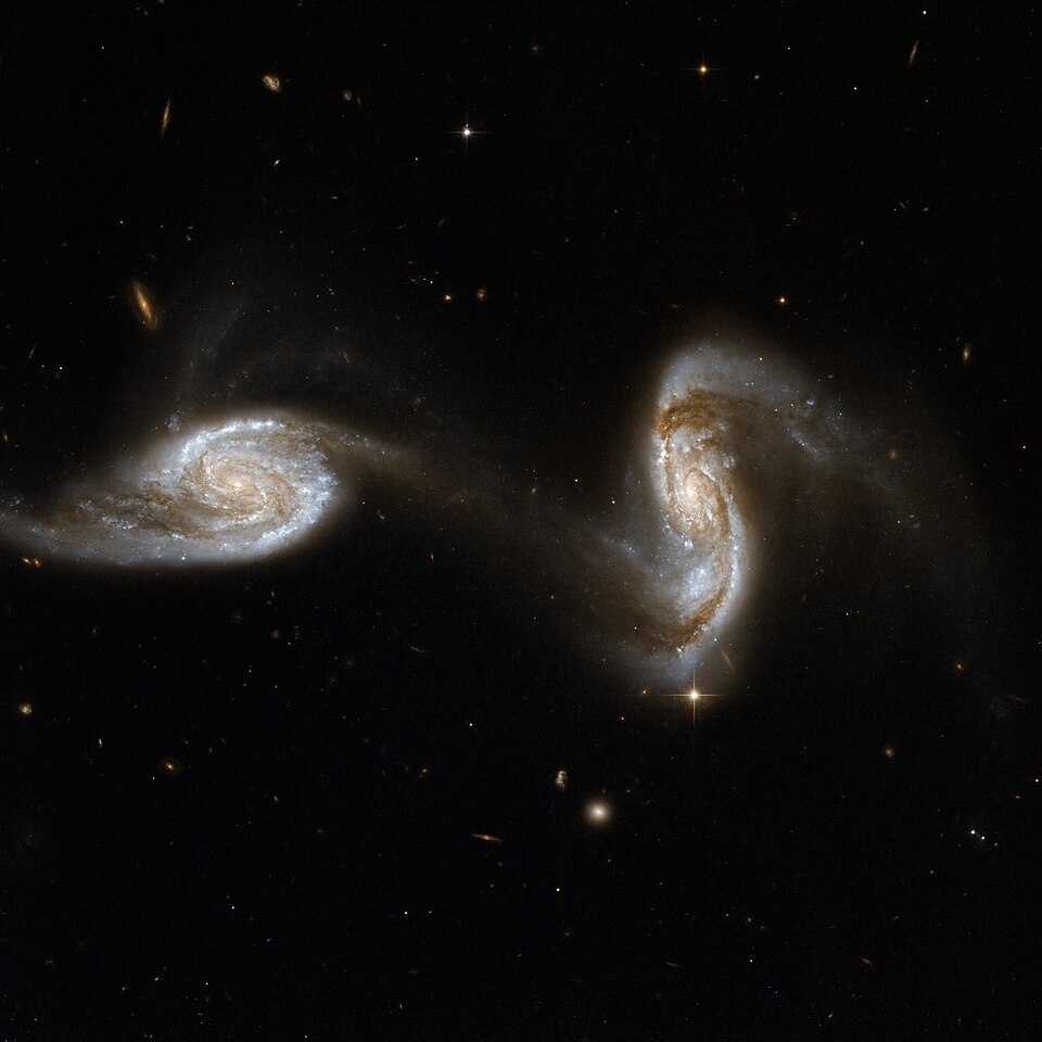 The light reaching Earth from Arp 240 · NGC 5257/5258 today left the galaxy roughly 300 million years ago. What you see in telescope imagery is a snapshot of the galaxy as it appeared before most of Earth’s mammalian history.